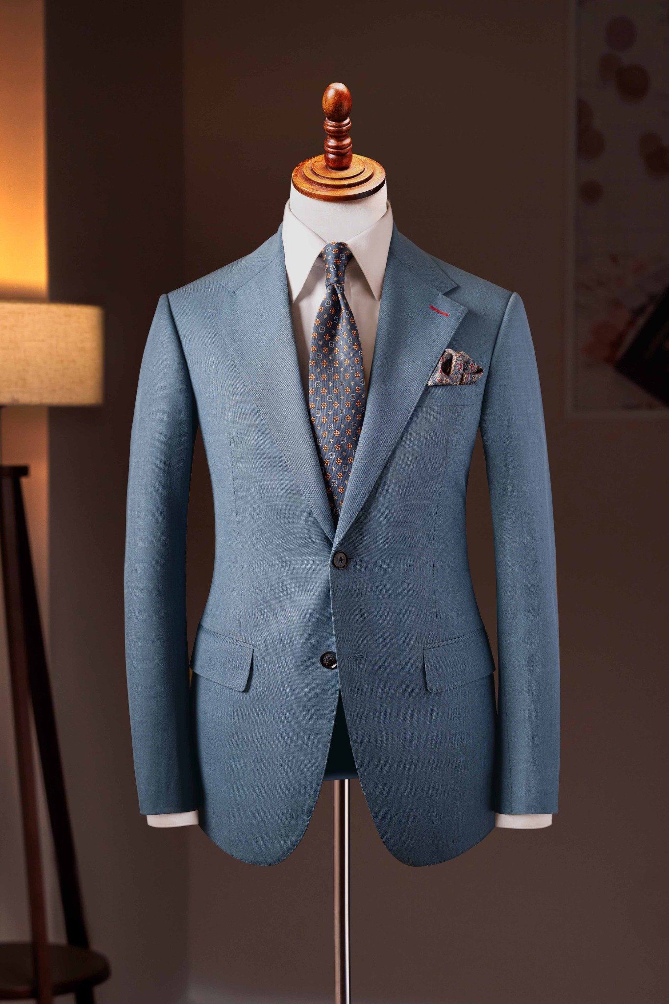Adam Store Solid Light Blue Single-Breasted Notch Lapel Blazer – AV315