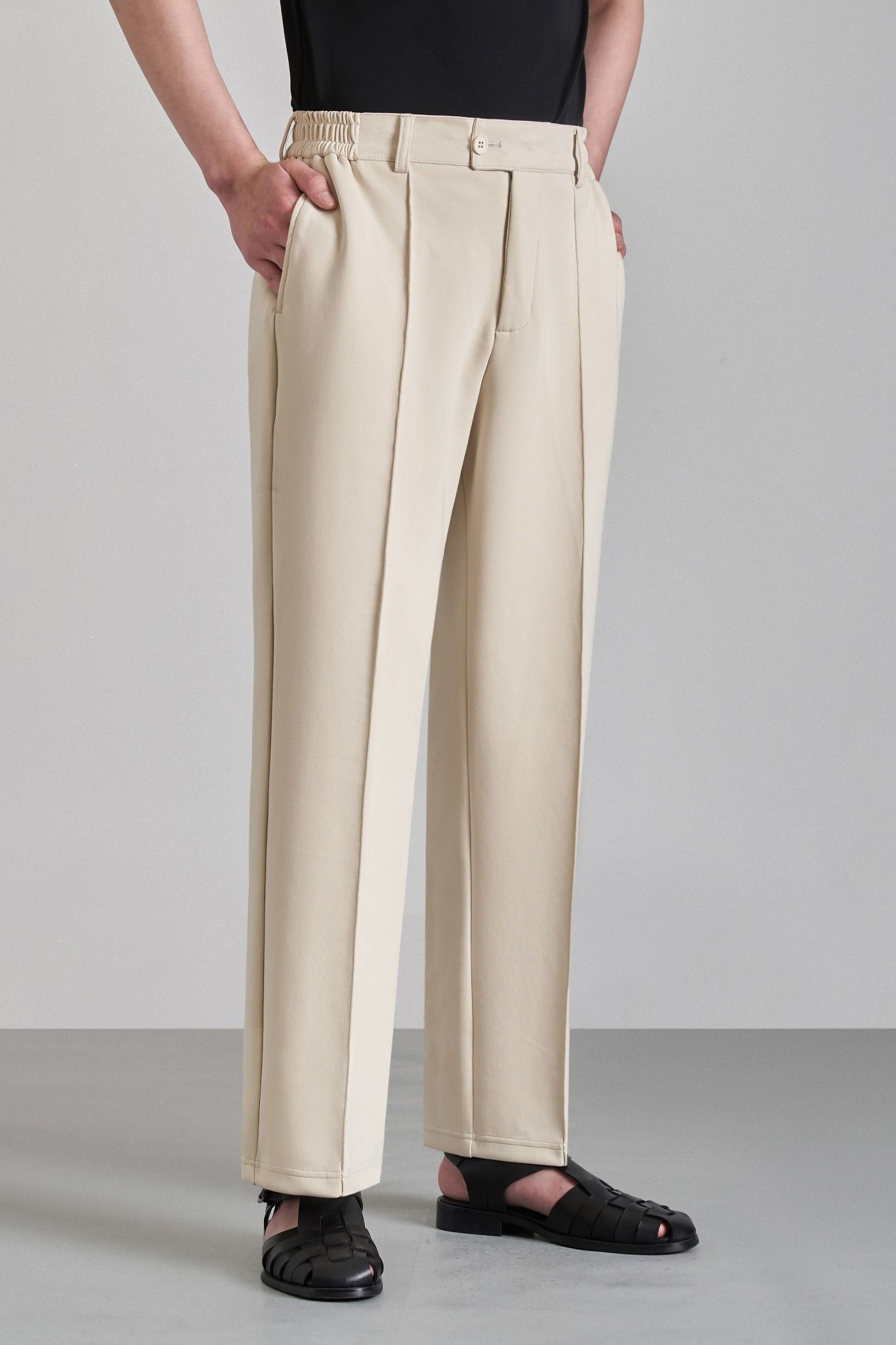 PRODUCT NAME: Plain Beige Dress Pants with Hidden Elastic Waist
